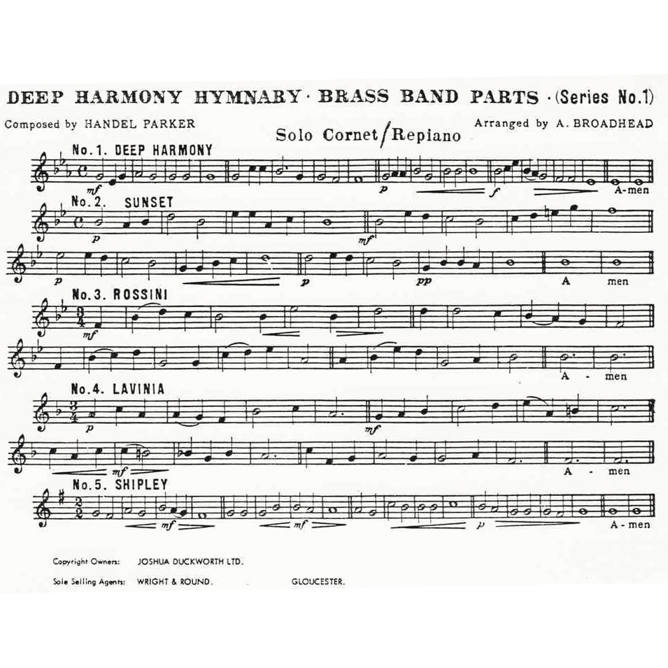 Deep harmony Hymnary : Deep Harmony, Sunset, Rossini, Lavinia, Shipley. Arranged by A. Broadhead for Brass Band