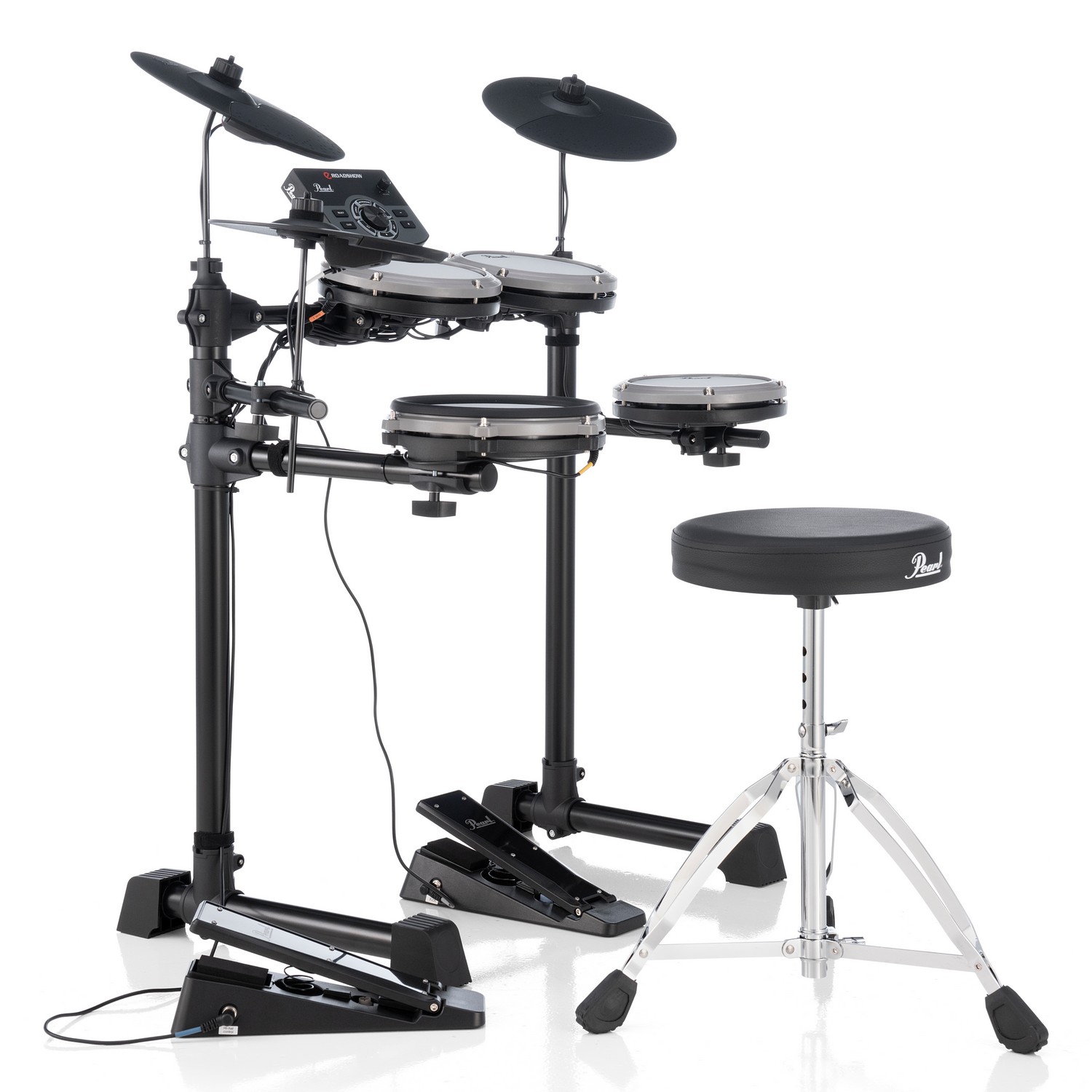 From the most trusted name in drums and percussion, Pearl's eRoadshow is an easily assembled, completely affordable, virtually silent electronic drum set platform that includes everything needed to start your journey to rhythmic greatness.