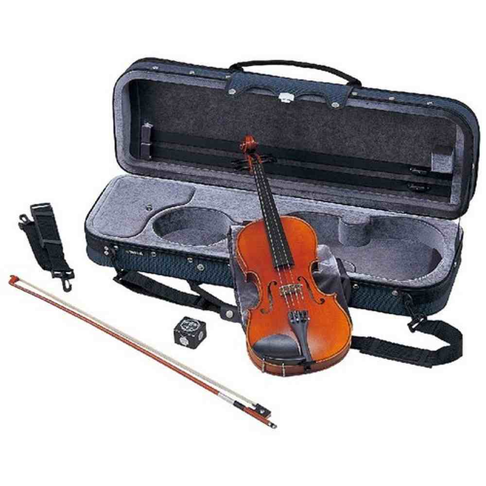 The full size (4/4) V7SG has an oblong case and comes complete with bow and rosin.
