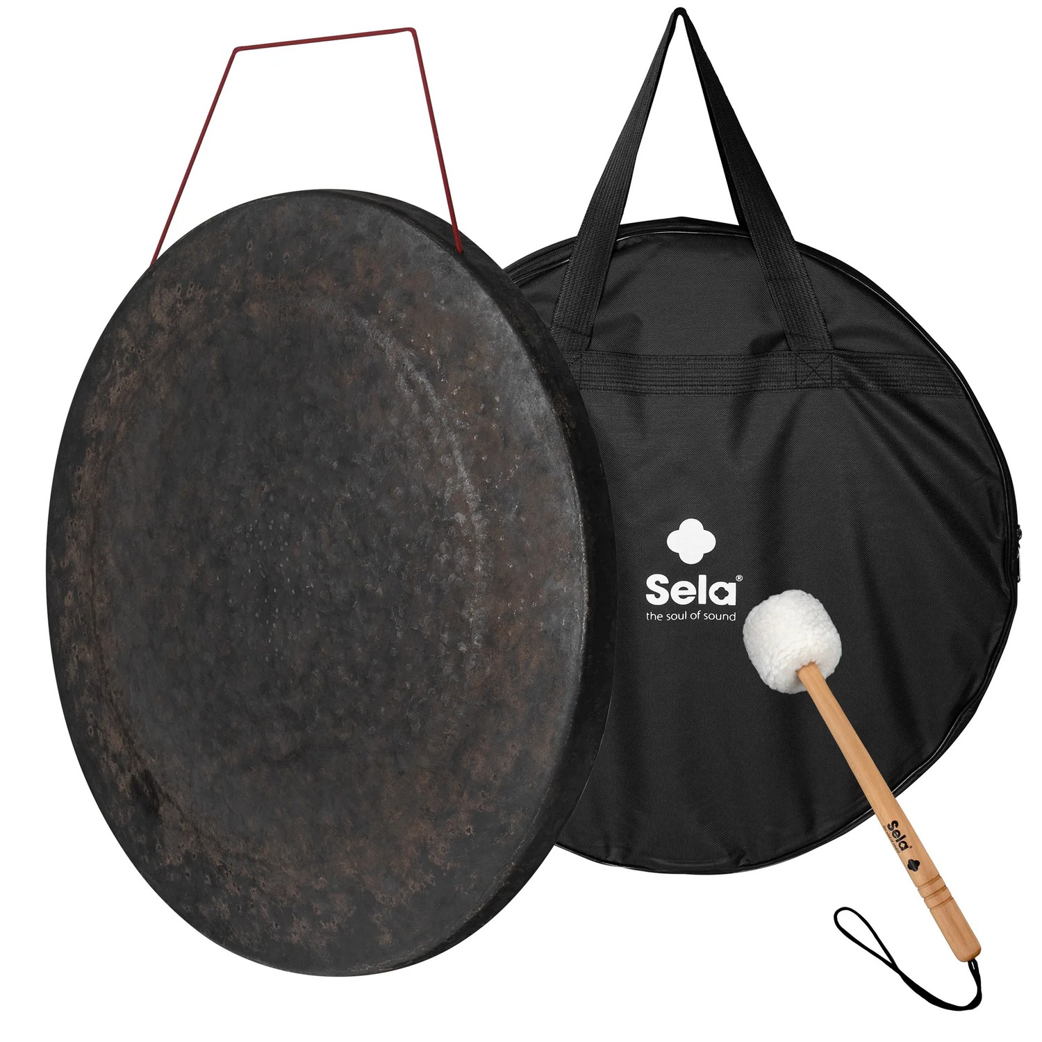 The Sela Chau gongs are genuine masterpieces that are made by hand in China from a special bronze alloy. Chau gongs have a traditional shape with a rim bent backwards and are available in sizes of 20, 24, 28, 32 and 36 inches. The larger the diameter, the deeper and more voluminous the sound when struck. Each model comes with a beech mallet with a fleece-covered head and a practical zippered carrying bag.