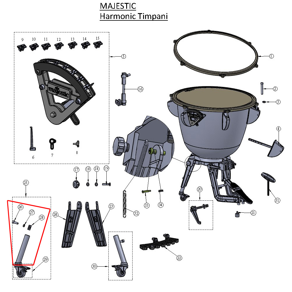 Majestic Sliding Tube DPPMT26-012RKC, Right, w/o Wheel, For Harmonic Timpani