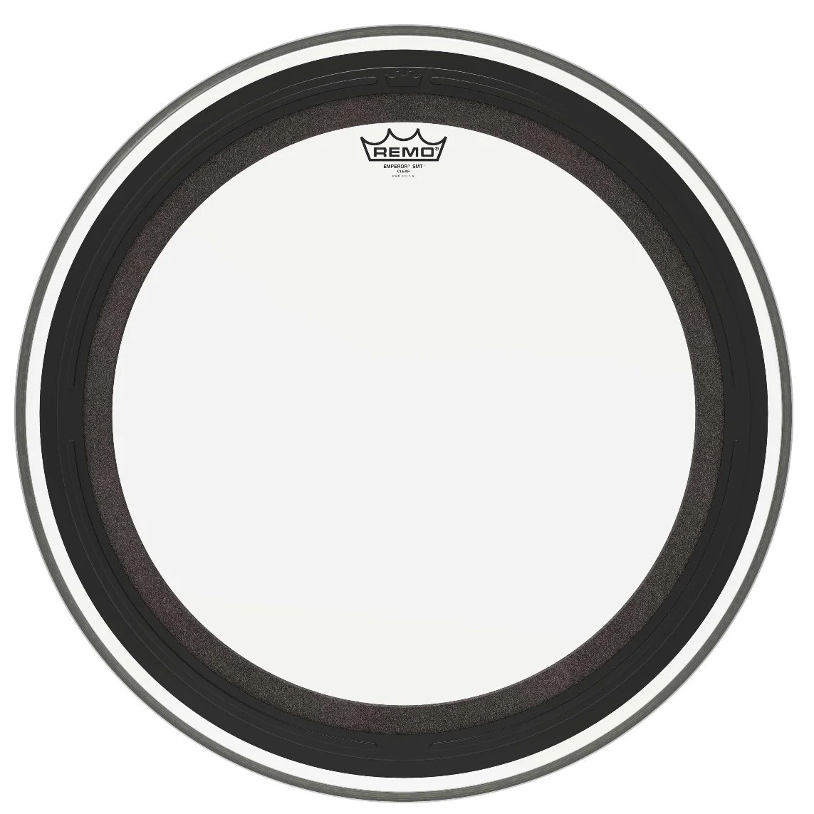 The Emperor® SMT Clear bass drumhead is a pre-muffled design featuring Sub Muffl® Technology. It is constructed with 2-plies of 7-mil and 5-mil Clear film, and an externally mounted dampening profile with free-floating acoustic foam. It enables the head and drum shell to maintain full sound characteristics with additional attack and low-end frequencies. SMT technology allows a broad tonal spectrum of tuning ranges with controlled high and mid frequencies coupled with deep, powerful low tones. It is a new industry standard and one of the market's most musical and versatile pre-muffled bass drumheads. Ideal for live and recording applications. Available in sizes 16" through 24 inches.