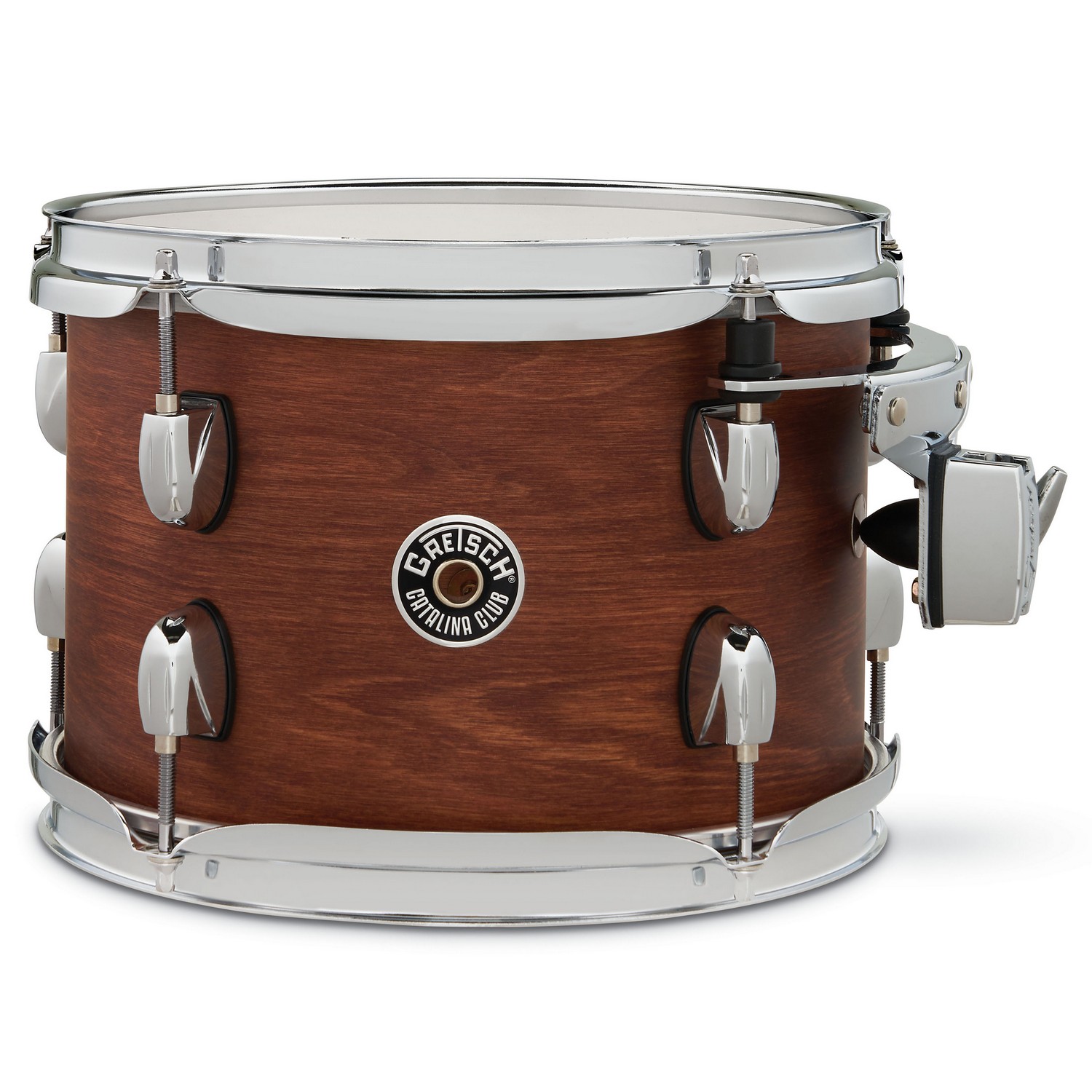 Tom-Tomtromme Gretsch Catalina Club CT1-0710T-SWG, 10x7, Satin Walnut GlazeThe Catalina Club series was really new territory for the Gretsch brand in its early days, because for the first time Gretsch drums were produced outside the USA and for the first time mahogany wood was used. But the enormous success of these models proves the developers at Gretsch right. The series combines traditional configurations and the classic GRETSCH sound with sleek and modern hardware. The foundation is formed by the seven-ply shells with 30° bearing edge, which, in combination with the REMO® heads, fitted as standard, give every drum set a warm and powerful vintage tone. Catalina Club sets are available in three different configurations and a total of seven finishes.