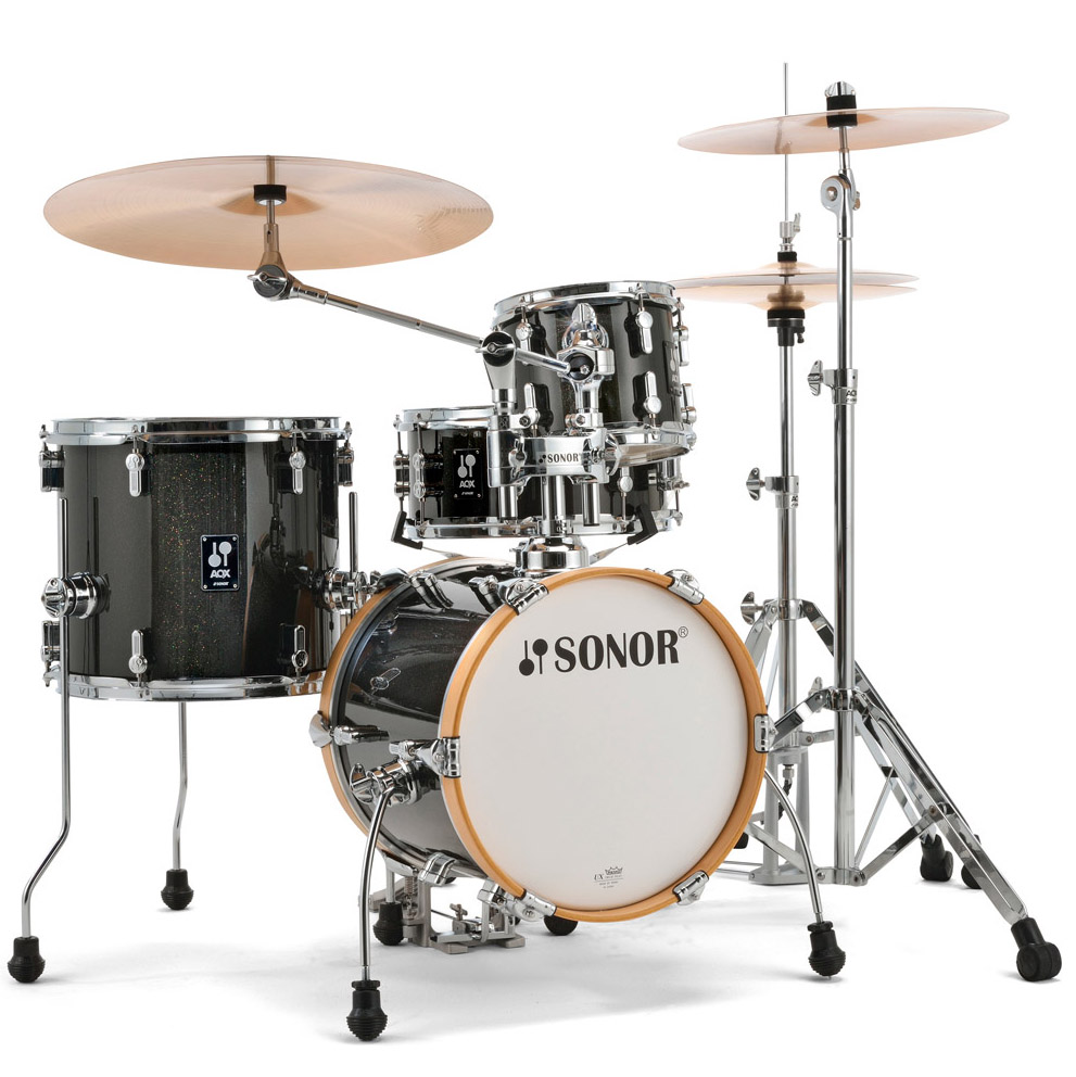 Drum Kit Sonor AQX Micro Set, 4 Pc, 14, Black Midnight Sparkle, Shell Pack