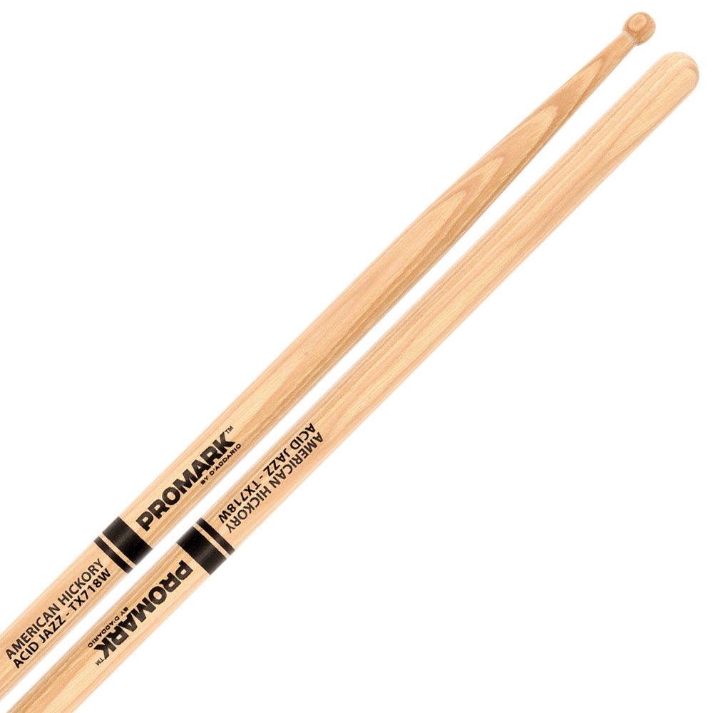 Drum Sticks Promark American Hickory Lacquer 718 Azid, TX718W, Wood Tip